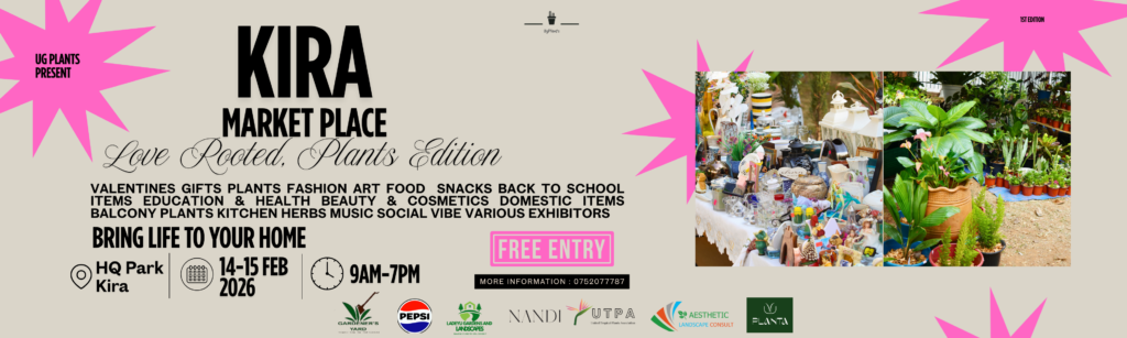 Kira Marketplace – Love, Rooted Plants Edition is a curated lifestyle and community marketplace taking place over Valentine’s weekend in Kira, one of Kampala’s fastest-growing residential suburbs. The event brings together plants, art, music, and sustainable living to create an engaging public experience that connects people to nature while supporting local creative and green-living brands.